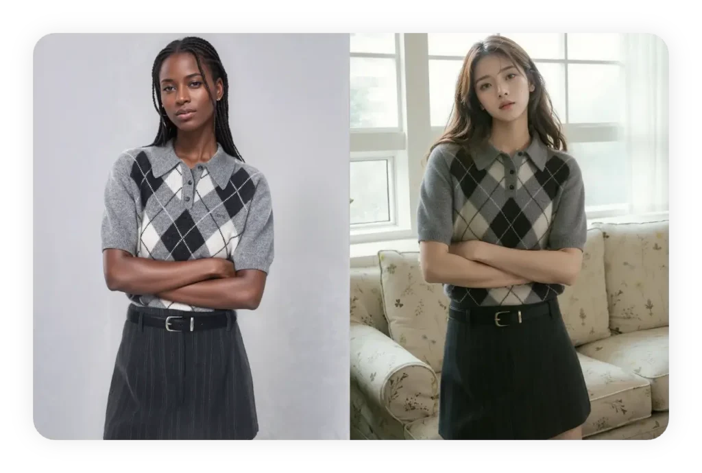Replace human models with realistic AI visuals for your fashion/product shots.